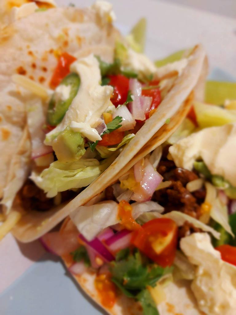I like to add a thin later of chedder cheese on the bottom of the tacos, then add your mince filling and another thin layer of cheese. Next, add your lettuce, salsa, avocado and sour cream in that order. Top with jalepenos for those who love spicy (like me)!